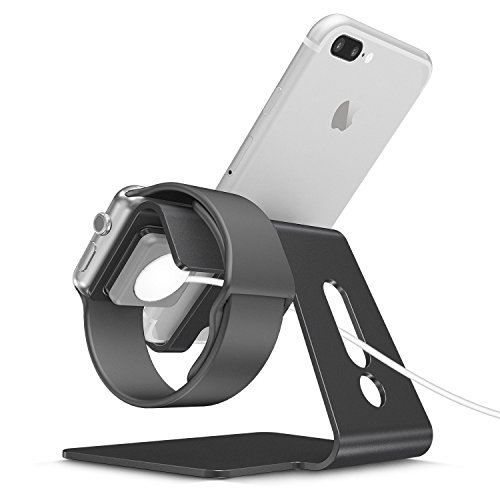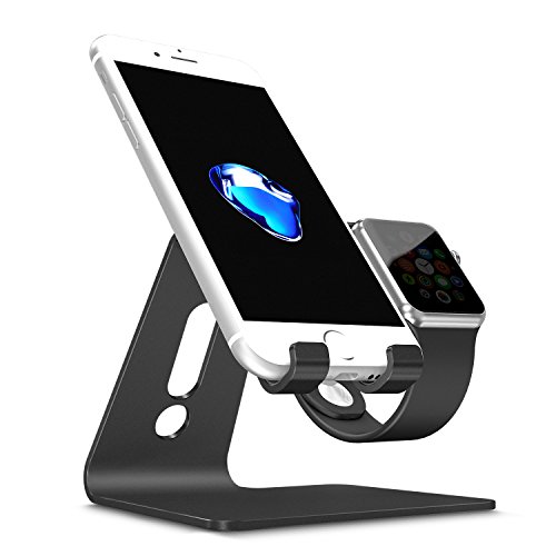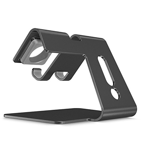 OMOTON 2 in 1 Universal Desktop Cell Phone Stand and Apple Watch Stand, Advanced 4mm Thickness Aluminum Stand Holder for iPhone and Apple Watch (Both 38mm & 42mm)