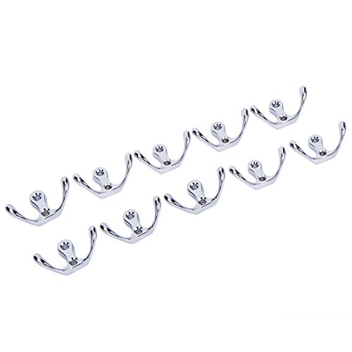 Moldiy Durable Zinc Alloy Hook Bathroom Toilet Single Robe Towel Coat Clothes Hook Rustproof Kitchen Utensil Utility Hanger Heavy Duty Wall Mounted for Home Storage Organization with 2 Hooks,Set of 10