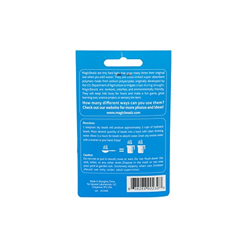 -. Feature : Magic Beadz start as tiny hard balls but quickly grow many times their original size to become bouncy, squishy, and beautiful jelly water beads when you add water. / Keep kids busy for hours and make a fun game, great learning tool, science project, or sensory bin item. / Nontoxic, colorfast (won't fade or bleed!), non-flammable. Fully tested and exceeds all children's toy safety requirements. / These 15 individual packets make a perfect party favor, student activity, gift or stocking stuffer. Budget-friendly and safe refill or replacement for all Orbeez products. This rainbow mix includes 12 unique colors. Also available in sets of 30 or 100 packets. / Try Magic Beadz risk free with our 100% GUARANTEE. Click "Add to Cart" or "Buy Now" to get started!