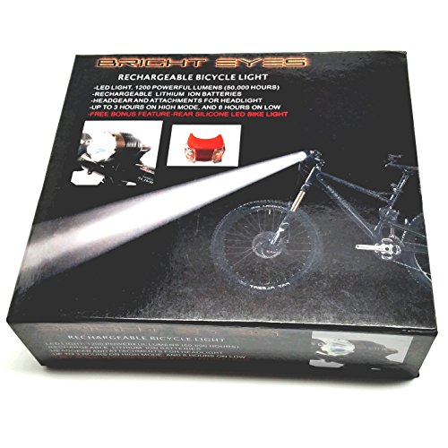 - Title : Bright Eyes Rechargeable Bike Headlight - 4 NEWLY UPGRADED FEATURES and ADDITIONS (Look in 2nd image) - POWERFUL 1200 LUMENS - FREE TAILLIGHT Included, Limited Time - WATERPROOF - No Tools required - LIFETIME WARRANTY