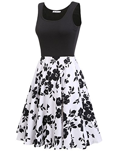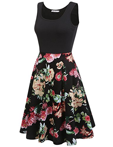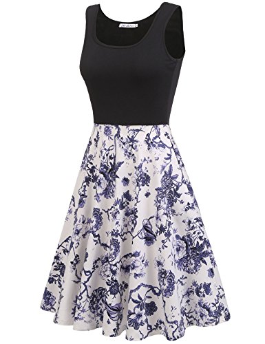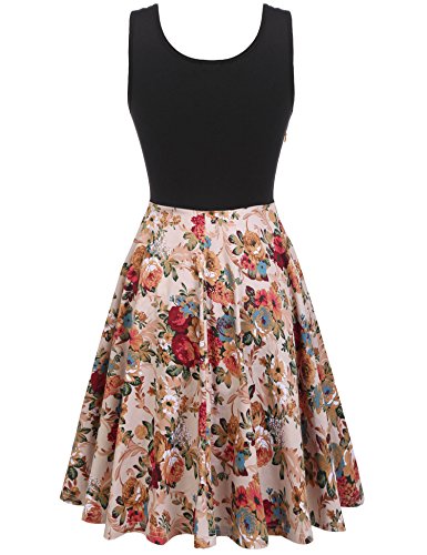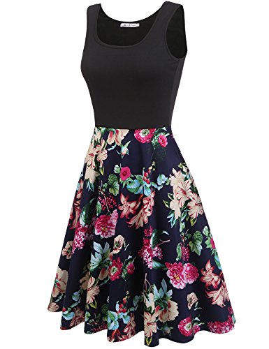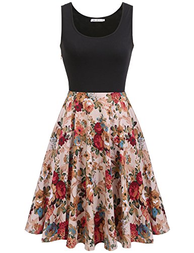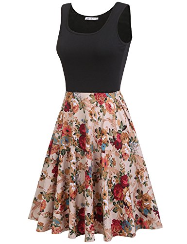 FEATURES: The Macr&Steve A-line dress is made up with two parts. Bottom with Vintage Floral pattern, two pockets, zipper on the side. Top with cotton, strechy and breathable.