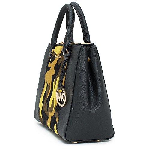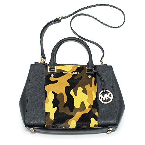 -. Brand : -. Color : Black Yellow Camo -. Department : womens -. EAN : 0888235577654 -. ProductGroup : Shoes -. ProductTypeName : HANDBAG -. Title : Sutton Center Stripe Medium Satchel Black Handbag New -. UPC : 888235577654