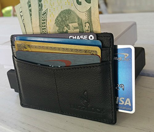 -. Title : BUZZLOCK Front Pocket Wallet & Credit Card Holder W/ RFID Blocking. Slim Design in Leather