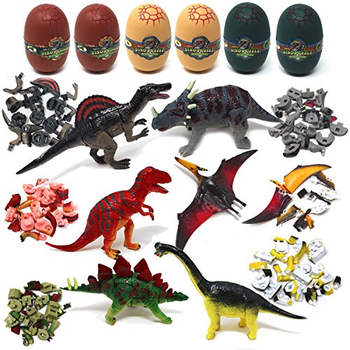 SUPER VALUE: 6 Pack Easter Egg Fillers 3D Dinosaur Puzzles Party Favors. Each Different Style Dinosaur Figure has 11 to 27 Pieces Blocks to Build, Total 126 Pieces Dinosaur Blocks.SO MUCH FUN: Kids Love Easter Eggs. Imagine How Happy Your Boy Would be By Finding Dinosaurs in These Eggs. In Addition, Building These Blocks of 3D Dinosaur Puzzles Will Stimulate Your Child's Imagination and Creativity, Develop Their Problem Solving Capacity and Build Their Self Confidence.