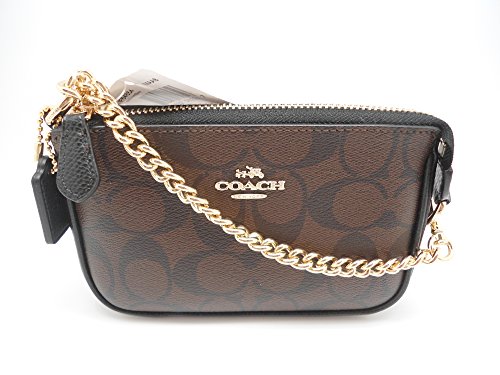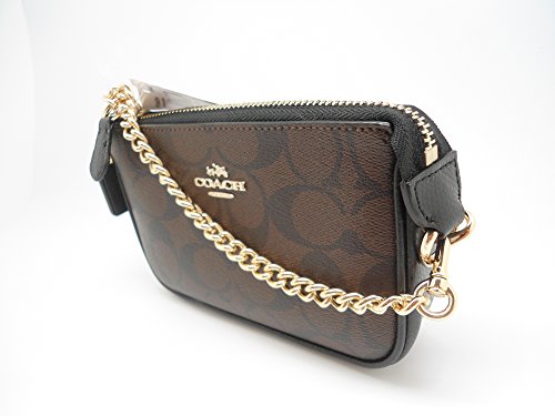 Coach F64854 Signature Small Wristlet Clutch Handbag Brown/black