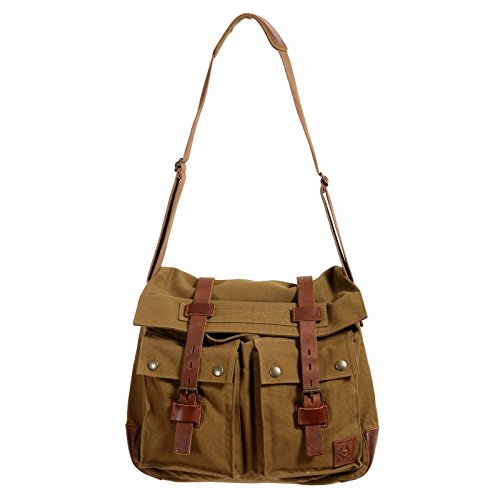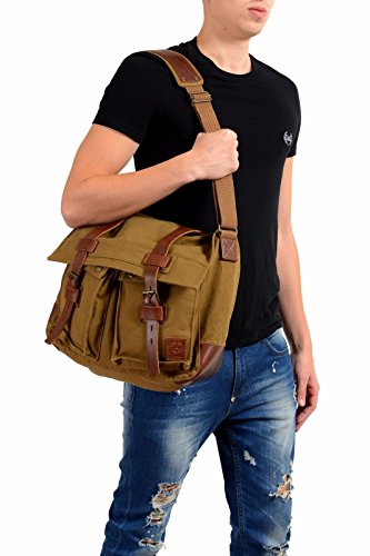 Product DescriptionBelstaff Khaki Green Unisex Leather Trim Crossbody Messanger Shoulder Bag0