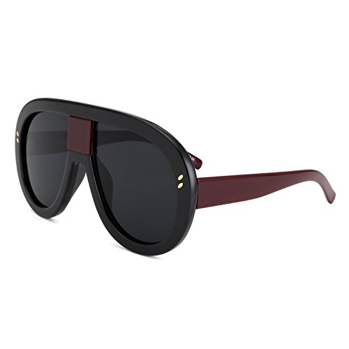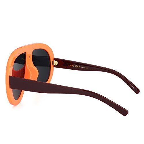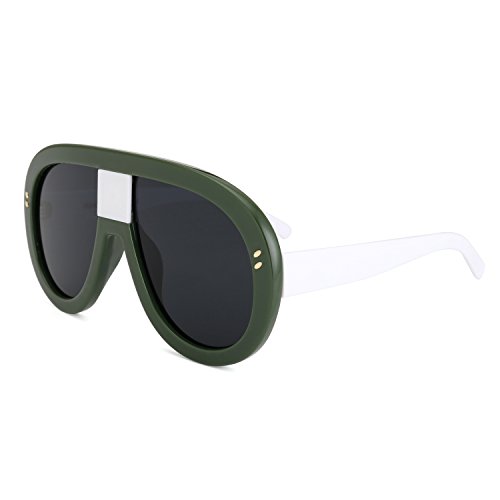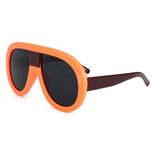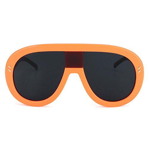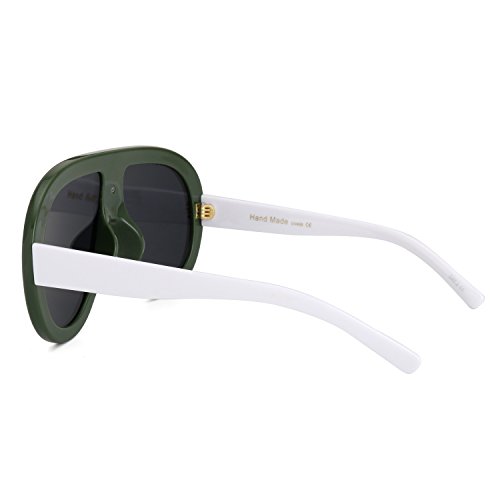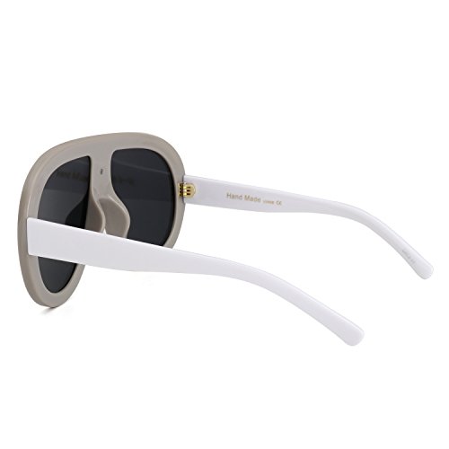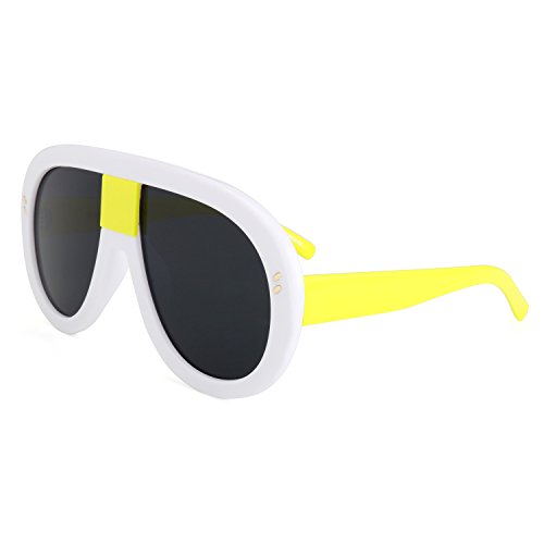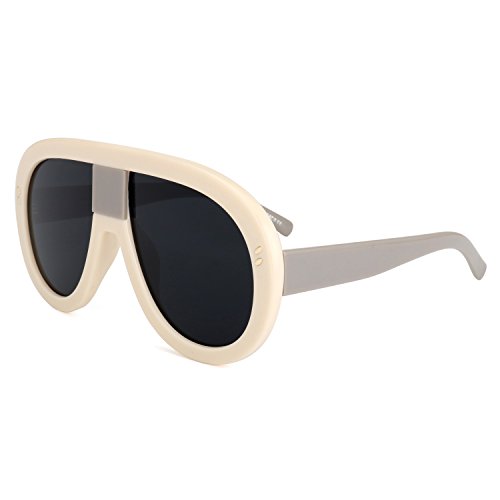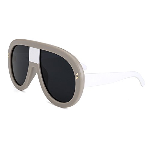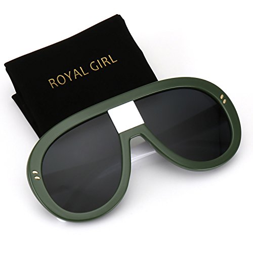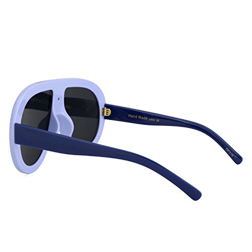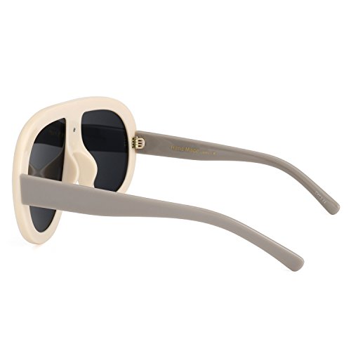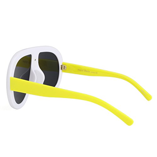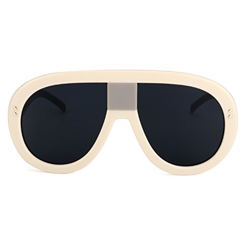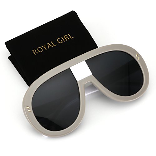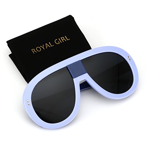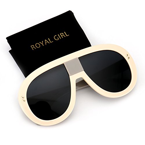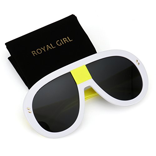Bold and iconic,these large classic horn rimmed sunglasses feature stunning colored mirror lenses and metal rivet details. Complete with stylishly wide arms and a matte finish,this versatile?style can worn anywhere from a day at the beach to outdoor parties by the pool.? This ROYAL GIRL exclusive product is made from a plastic based frame, metal hinges, and 100% UV protected reflective flash mirror lenses,and restore a vivid colorful world in your eyes. These oversized aviator sunglasses are an impeccably chic pair from the designer's coveted collection.They have been crafted from 50% natural sources and boast a nude and white acetate frame?complete with UV protective mirrored lenses. Packing List: