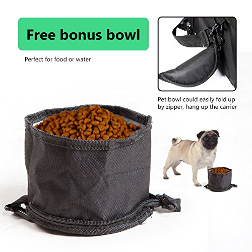 What If My Pet Gets Hungry During Travel A FREE BOWL can let your furry friend easily have a quick drink or snack while on-the-go. When your pets has finished,you con easily fold up the bowl with the zipper and hang up on the carrier, no extra space to need!