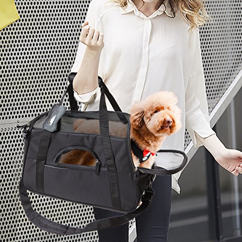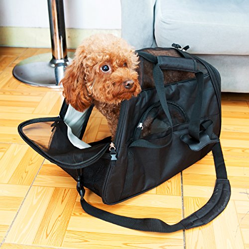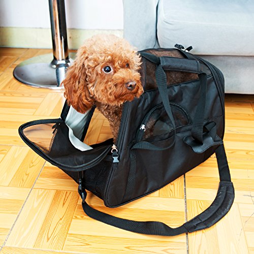 Package: Soft-sided pet carrier Fleece pet bed Adjustable shoulder strap Free bowl 0