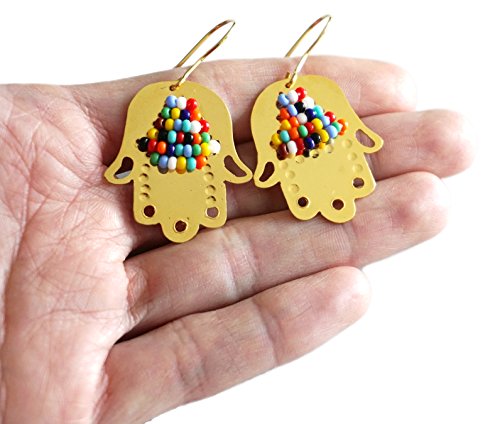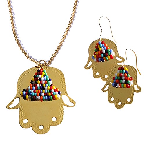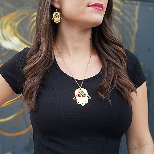 -. Feature : Material: Bronze / Colored Beds / Pendant Size: Approx 1"in / Gold Plated Hamsa Hand Necklace / Fatima Hand Necklace Good Luck