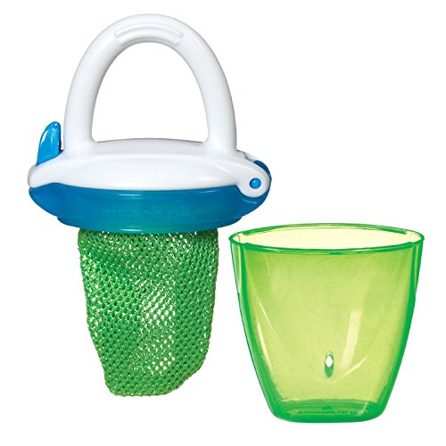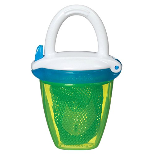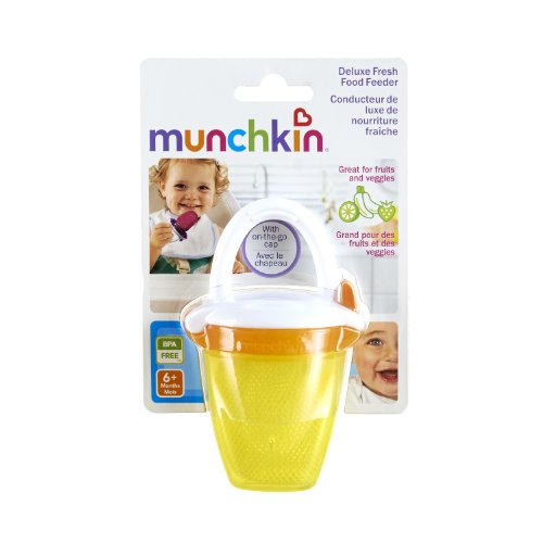 -. Binding : Baby Product -. Brand : Munchkin -. Feature : Introduce fresh fruits and veggies to your baby with ease / Feeder helps reduce the risk of choking - only small pieces of digestible food get through / Simple and easy to use - place food in mesh bag and snap shut to secure / Great for travel - includes on-the-go cap with snap-tight closure / BPA-free; 6+ Months -. Label : Munchkin -. Manufacturer : Munchkin -. ProductGroup : Baby Product -. ProductTypeName : BABY_PRODUCT -. Publisher : Munchkin -. Studio : Munchkin -. Title : Deluxe Fresh Food Feeder