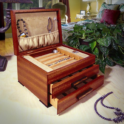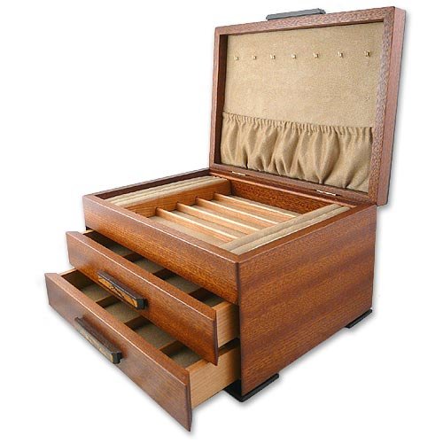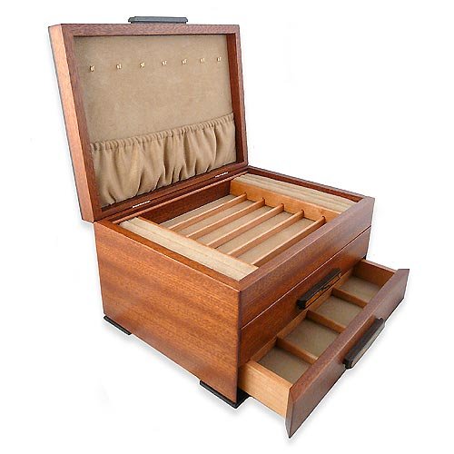-. Binding : Kitchen -. Brand : Modern Artisans -. Color : Brown -. Department : womens -. Feature : Jewelry box is crafted with heirloom-quality hand-polished natural hardwoods with clear finish / Solid natural sapele wood base with contrasting spalted maple and wenge wood handles / Burled madrone wood lid with spalted maple wood accent, edged in contrasting wenge wood / 4 rows of felt ring holders, brass necklace pegs with pouch, felt-lined rows, 2 felt-line drawers / 12" wide x 9" deep x 6.5" high; Handcrafted in the USA -. Label : Heartwood Creations -. Manufacturer : Heartwood Creations -. Model : JW0410 -. MPN : JW0410 -. PartNumber : JW0410 -. ProductGroup : Home -. ProductTypeName : HOME -. Publisher : Heartwood Creations -. Studio : Heartwood Creations -. Title : Urban Craftsman Heartwood Jewelry Box with 2 Drawers