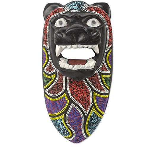 NOVICA 'Black Lion Spirit' Beaded African Wood Mask
