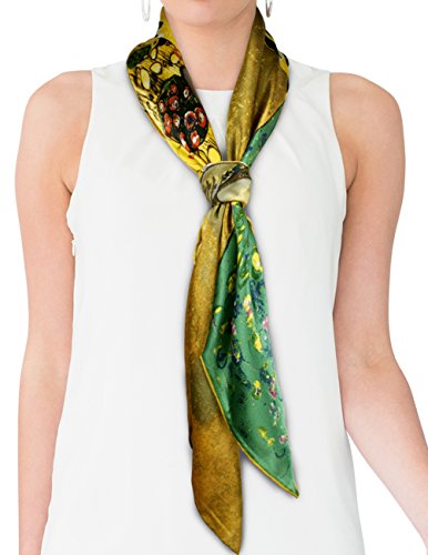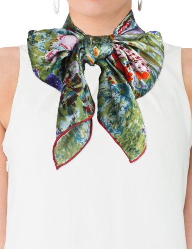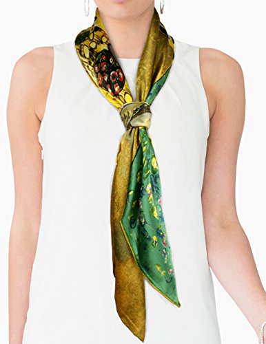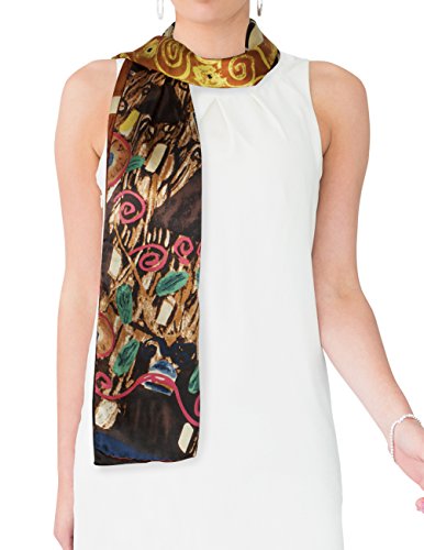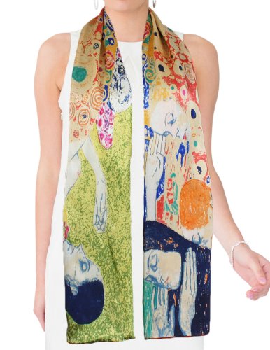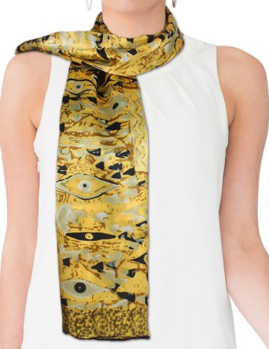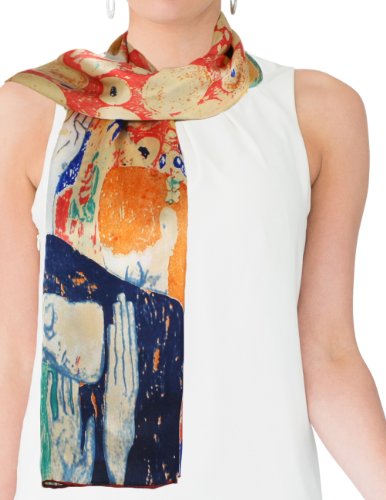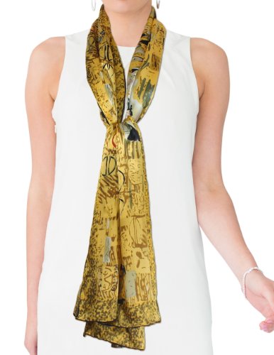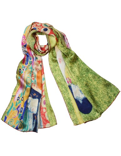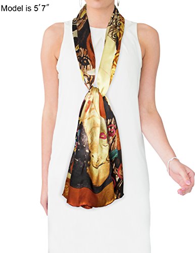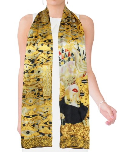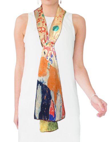Design Collection: This scarf recreates one of Gustav Klimt's lady masterpieces "Judith II aka "Giuditta Salome", "Hope II", or "Adele Bloch-Bauer I". Dahlia is the first to convert famous paintings into daily wear and has developed an extensive Art Painted Luxury Silk Scarf Collection with about 40 designs. Material Craftsmanship:Average silk scarves range from 5-momme to 10-momme in thickness. Dahlia uses 100% 12-momme luxurious charmeuse satin silk which has a silkier, softer and more vibrant surface than satin, making a perfect canvas to preserve the rich colors of the original art. Each scarf's edge is hand rolled by skilled workers because Charmeuse is one of the most challenging fabrics to sew and also tends to leave holes and marks where the fabric was pinned. Quality Eco-Friendly Dyes: Dahlia use high-quality and eco-friendly dyes to create long-lasting vibrant and saturated prints. Lower quality dyes are harmful to the environment and will fade over time after washing. Versatile Use: This scarf freshens and brightens your wardrobe during any season and for all occasions with its iridescent luster, vibrant colors and soft touch. It can be worn as a shawl, around your neck, head and waist; tied to a hat or handbag; or used to decorate your home. Risk-Free Shopping: Besides no-question-ask return policy, Dahlia also provides quality assurance for your risk-free shopping experience. Dimension: 17 inches W x 62 inches L Care Instruction: Dry clean or Hand wash Country of Origin: Imported 0 |