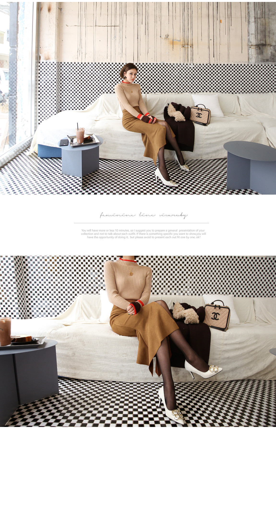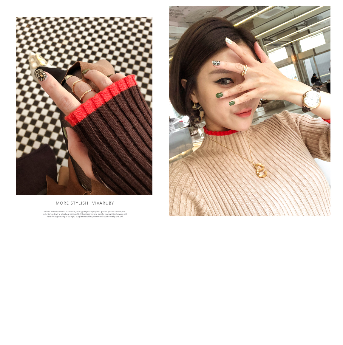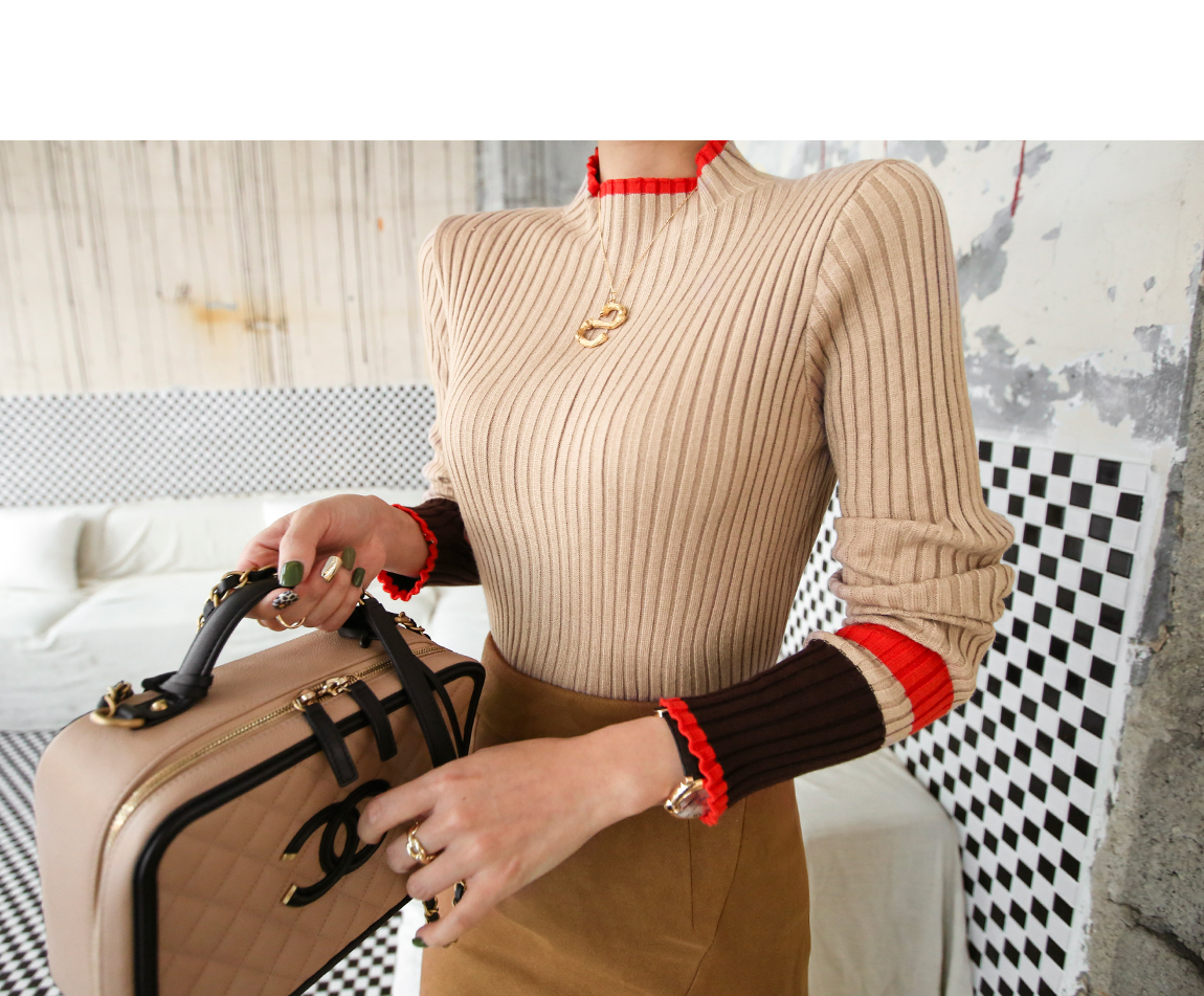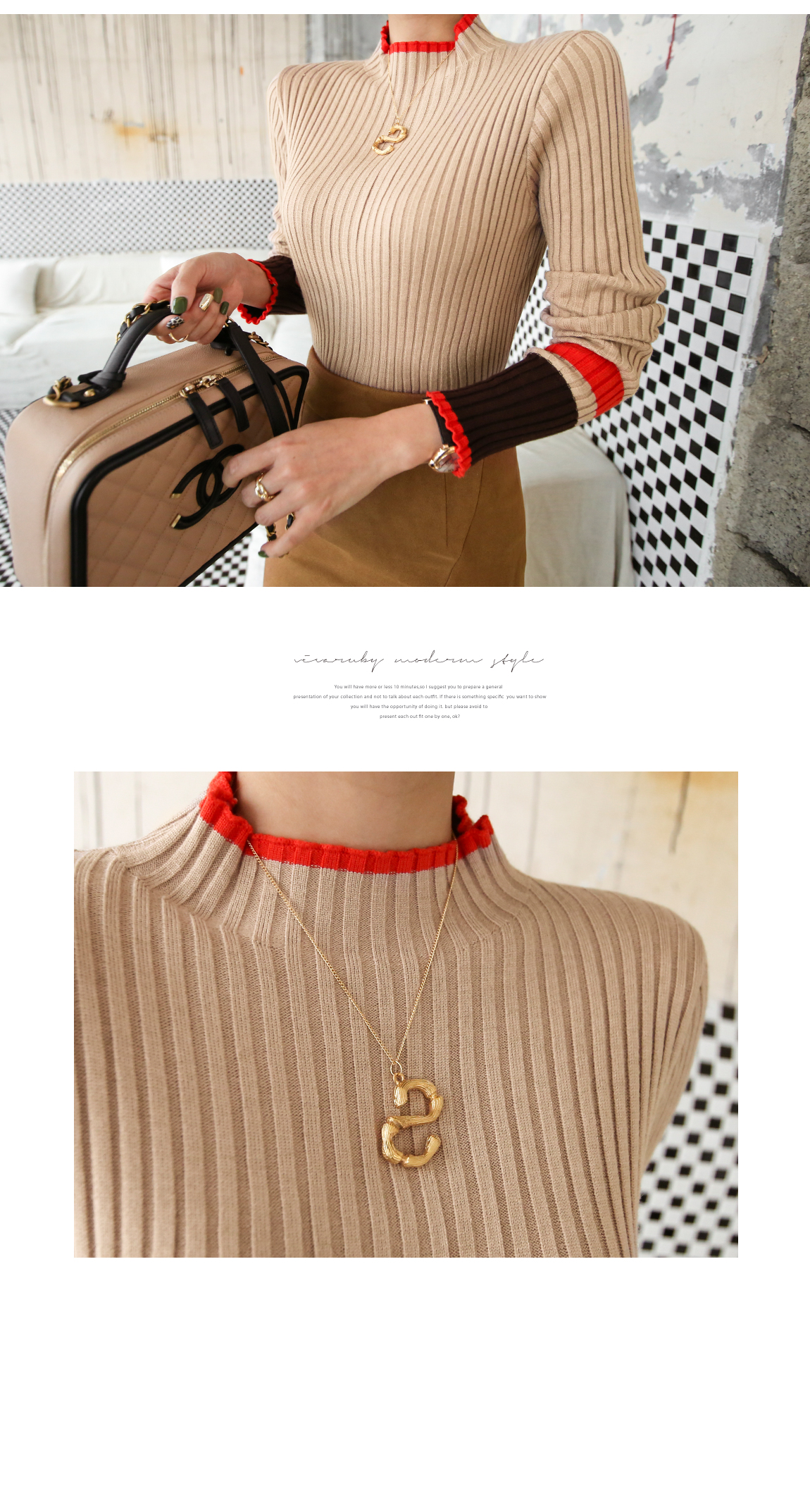 ネックラインと袖のラインにカラー配色でポイントをくれたんです