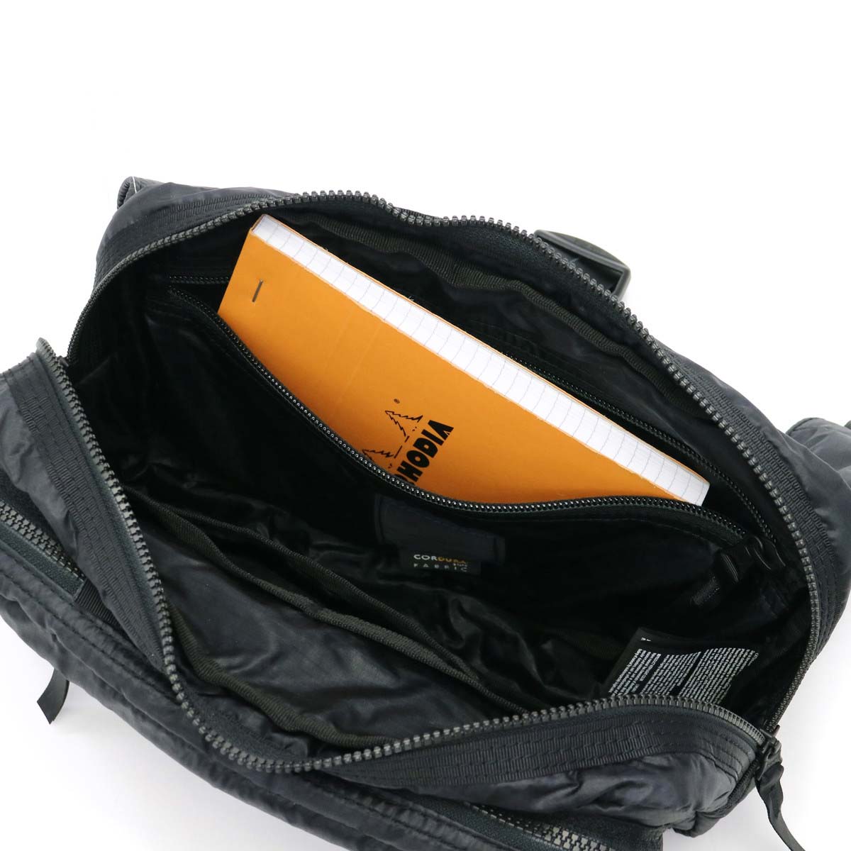 Adopted "30d ripstop cordura nylon" woven in a lattice of Cordura 66 nylon thread of Invista which is excellent in durability and abrasion resistance. It is lightweight but high in strength, excellent in water repellency and abrasion resistance.