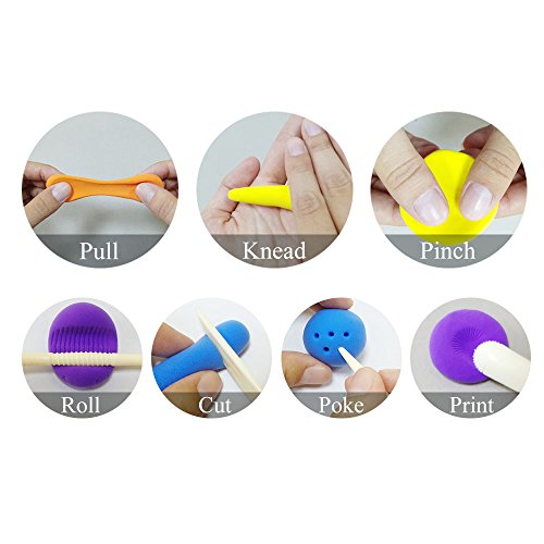 STRONG SHAPE AND FULL ELASTIC : the clay have strong adhesion and full elastic that can easily knead or pinch to make the shape you want and can refinement to use the tools to poke , roll , print whatever pattern kids need . this clay for kids inspire kid's imagination and improve hand-brain coordination.