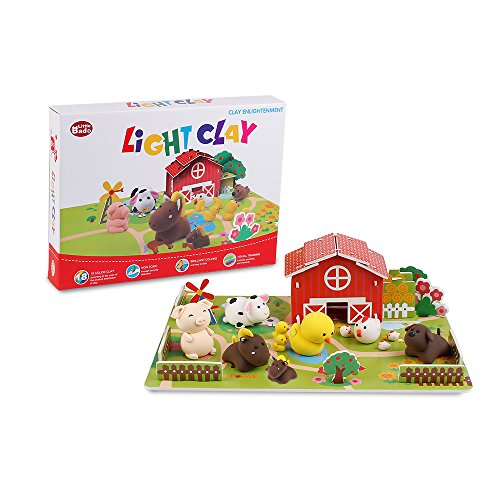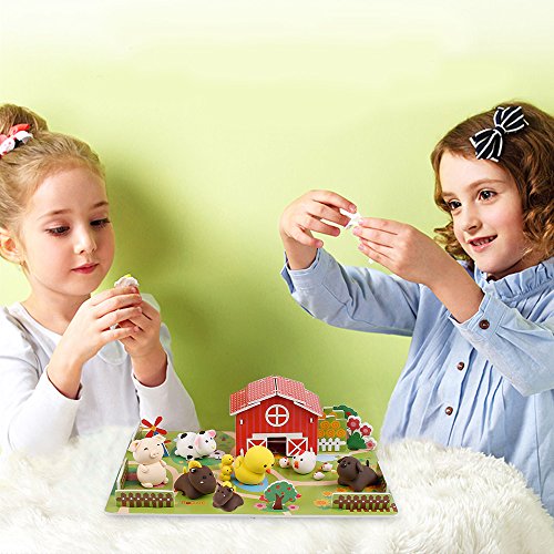18 BRIGHT COLOR PCS CLAY AND 21 FUNNY PUZZLES WITH 5 DURABLE TOOLS : all the 18 clay pcs are strong strength and very soft but no messy , the 21 funny puzzles can be build as a farm , this air dry clay set is interesting for kids to learn animal name with 5 tools and provide more realistic scene experience for your kids to enjoy play for education learning