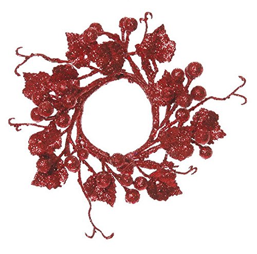 SET OF THREE! Christmas Glitter Berry Candle Ring or Mini Wreath in CHOICE OF 3 COLORS (Red)