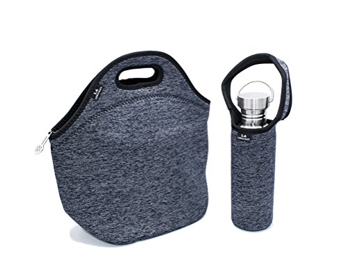 - BEST FOR OUTDOOR USE - The neoprene lunch/tote bag set includes a bottle sleeve. The lunch bag and bottle sleeve set is ideal for outdoor use or for your office or work, school or college. The lunch box set keeps food fresh. Suitable for women, men and kids.