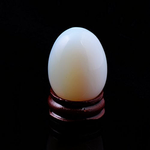 Opal Opalite 40*30mm Eggs with Wood Stand Stone Carved Natural Gemstone Bell Chakra Healing Crystal Reiki Crafts Free Pouch (Opal)