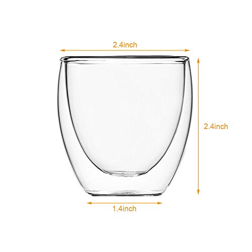 Specifications? Material: Borosilicate glass? Type: Double wall glass cups? Temperature: -20℃-150℃? Capacity: 80ml? Color: clear?