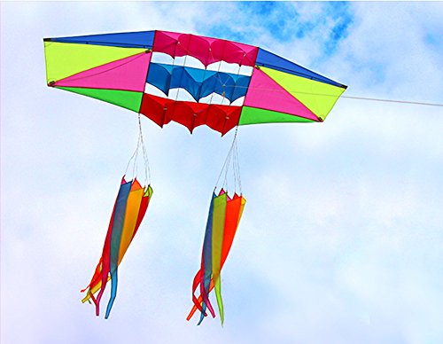 Besra Huge 98inch Single Line 3D Radar Kite with Flying Tools 2.5m Power Box kites with 2 Windsock tails Outdoor Fun Sports for Adults