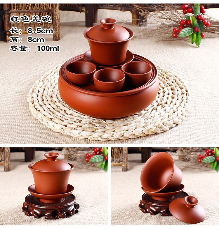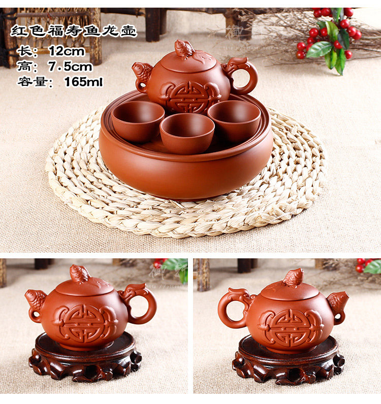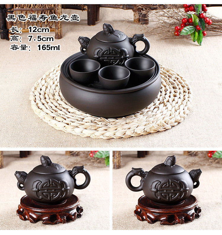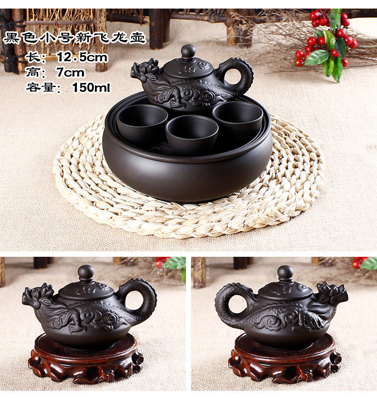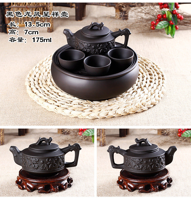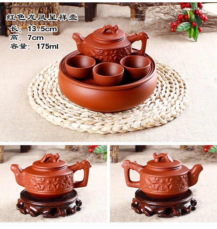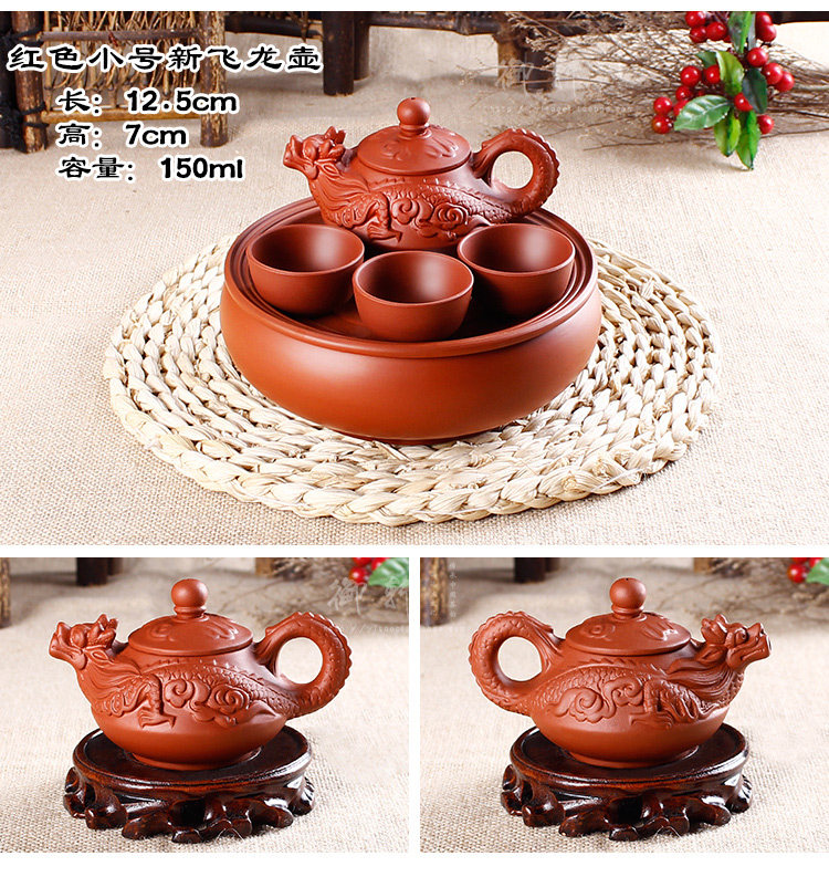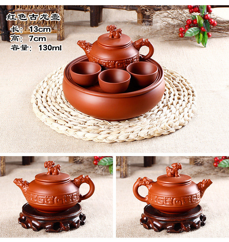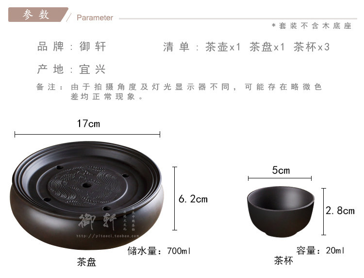- 宜兴紫砂茶盘仿古双龙转盘大号圆茶盘排水式茶海茶托圆形茶台茶具