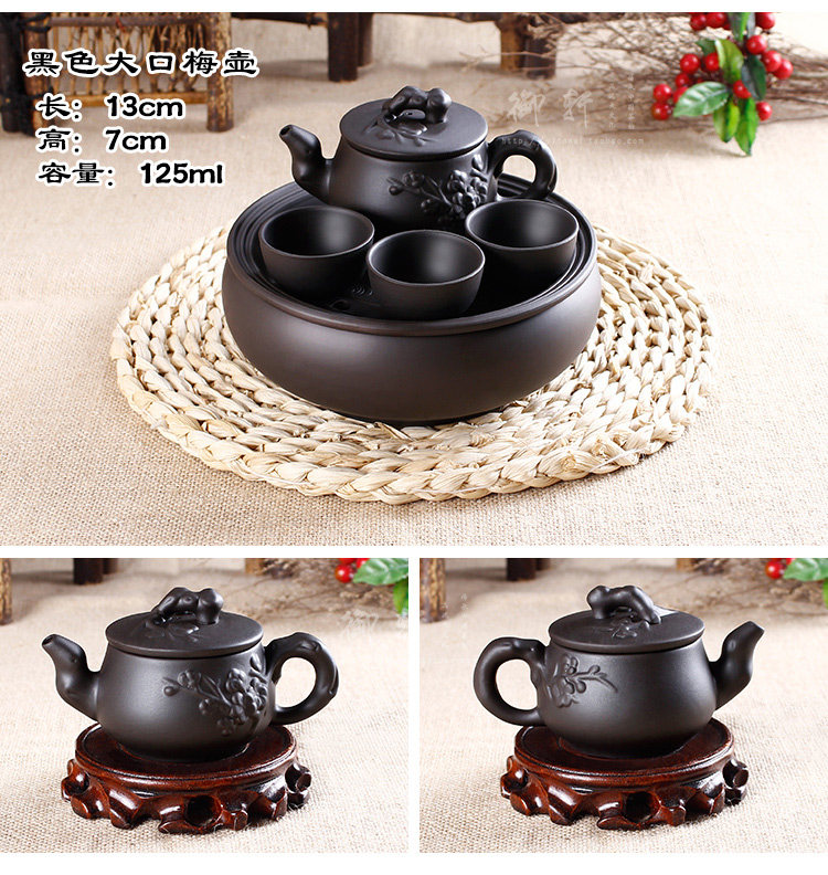 - 宜兴正品紫砂壶特大容量梅鹊报春泡茶壶摆件壶原矿老紫泥茶壶包邮