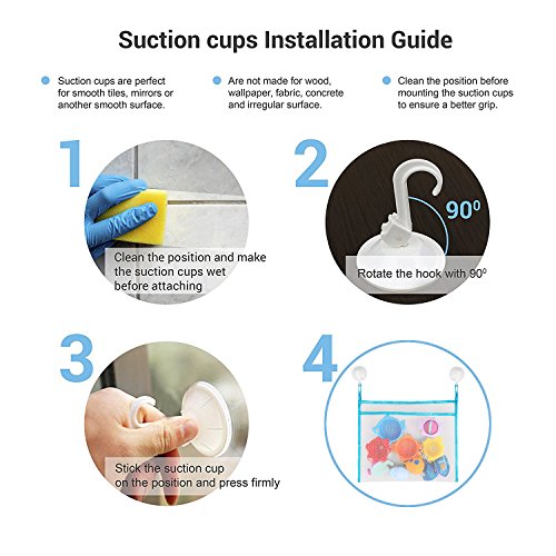Easy To Clean Up And keep mildew away The super strong mesh net included is the ideal bath toys organizer. It is a quick and easy way to organize all your bath toys and accessories so that they dry up faster and keep mildew away.The suction cups once you move the hook down which means your bath storage net will stay stuck to the wall without constantly falling off!