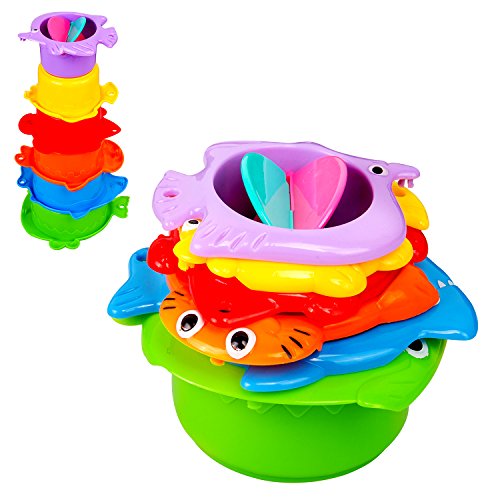 Fun & Educational - Colorful and unique design making these bath tub toys and pool toys for toddlers more fun to play and stack. Make your kids learn about animals, crafts, size, colors, and shapes while they play.