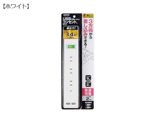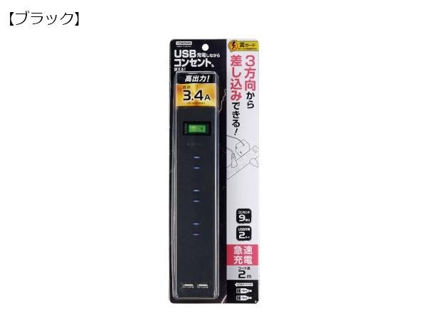 | 仕様 | コンセント個口数:9 USBポート:2(合計3.4A) プラグ形状:L型 コード長:2m 定格容量:合計1400W 最大サージ電圧:6000V 制限電圧:650V |