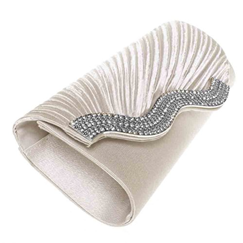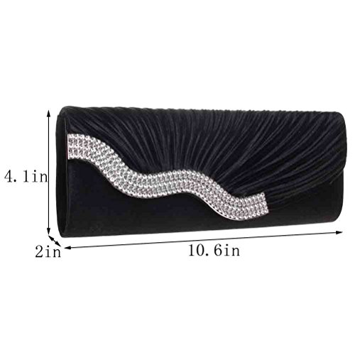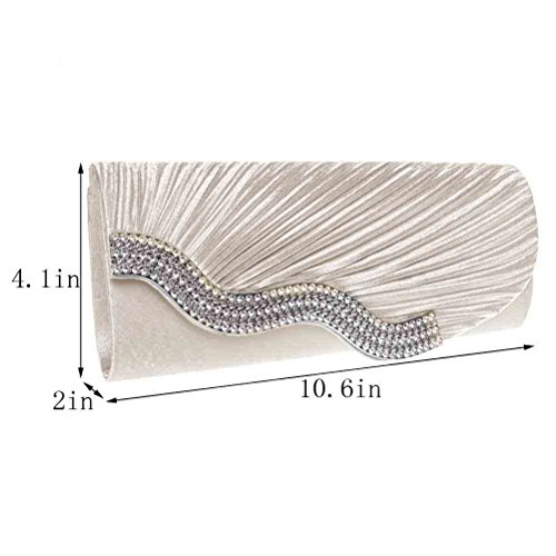 -. Feature : DESIGN - This pleated rhinestone evening clutch makes you noble and elegant. / CAPACITY - It's a super fashionable evening clutch that fit everything you need (cell phone, lipstick, a few bobby pins, ID, debit card, cash). / CARRYING OPTIONS - You can hold this evening clutch in your hand or you can also use it as a shoulder bag with the chains coming with the bag. / OCCASIONS - Great for wedding, party, prom etc. Just get this clutch purse to have a wonderful night. / SERVICE - We love our customer, we will try our best to address all the issue they may meet in time.