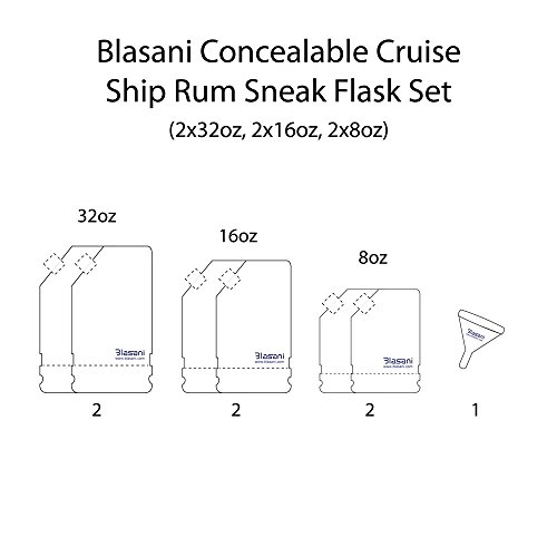 BLASANI Concealable Cruise Ship Rum Sneak Flask Kit Set (2 X 32 oz, 2 X 16 oz, 2 X 8 oz)