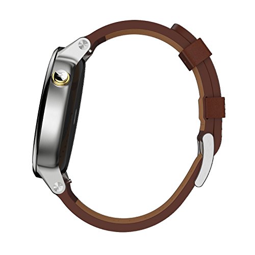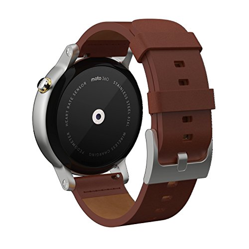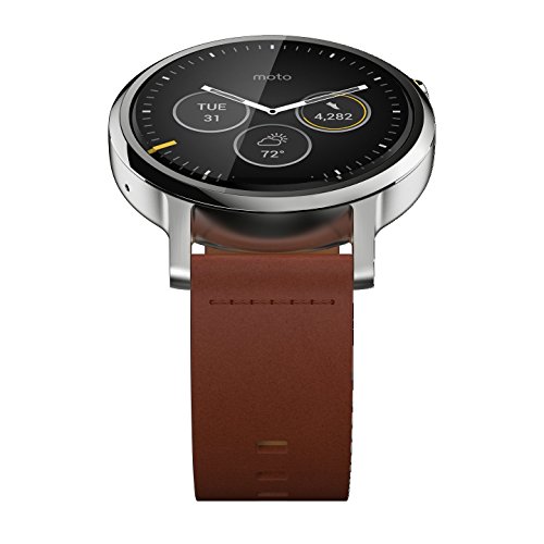 Compatible with most Apple iOS and Android cell phones Including iPhone 5, 5s, 5c, 6 and 6 Plus with iOS 8.2 or later and devices with Android 4.3 or later. At-a-glance notifications Receive your messages, news, weather and much more without checking your phone. Moto Body fitness tracker Monitors your steps, calories and heart rate, so you can meet your goals. Simple navigation and clear visuals A backlit LCD with 263 ppi (360 x 325) resolution provides a sharp view, even in dim lighting. Aircraft-grade 316L stainless steel case with scratch-resistant Corning Gorilla Glass Creates a durable design. The round design with edge-to-edge glass and a thin bezel offers a stylish look. IP67 water-resistant design Safeguards against moisture. Wireless connection to your device A Bluetooth 4.0 LE interface simplifies device pairing. Google Play apps Download apps like Spotify, Shazam and Ford for versatile functionality. Voice-activated design Lets you control the smartwatch simply by speaking. Ambient mode Extends the battery life, so you can enjoy lasting use.Feature