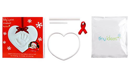ReleaseDate : 2015-10-20 Studio : Tiny Ideas Publisher : Tiny Ideas Binding : Baby Product Product Description Add a personal touch to your tree for years to come with this keepsake clay ornament from Tiny Ideas. Same as our original handprint ornament, but in a beautiful heart shape. Just press baby's tiny hand or foot into the non-toxic, soft air-drying clay to capture the precious imprint. There's absolutely no mixing, no baking, and no mess. If you make a mistake - no problem, you can redo it as many times as you need until you get the perfect impression. Includes plastic shaping ring, air-drying clay, rolling pin, plastic hole punch, and red and green satin ribbons for that finishing touch. 100 percent baby safe.