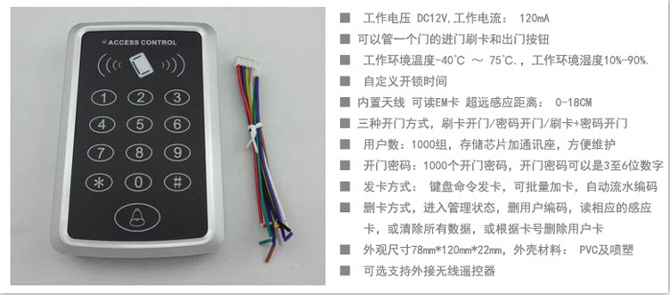 2、感应卡开门、感应卡加密码开门、密码开门三种开门方式;