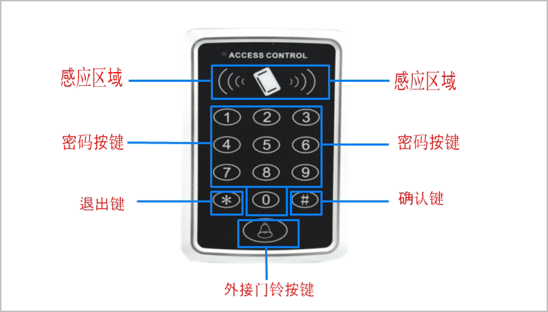 1在待机状态下输入#123456#,蜂鸣器鸣响一声,指示灯亮红色,常亮,门禁一体机进入系统编程模式。