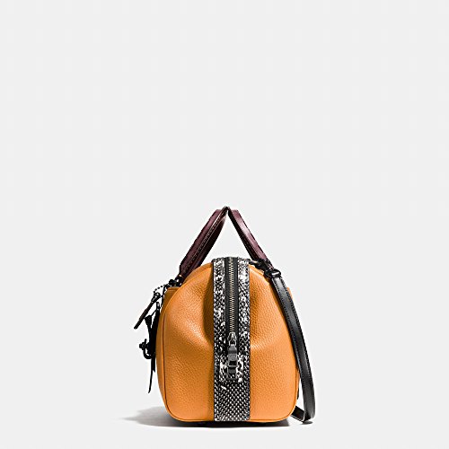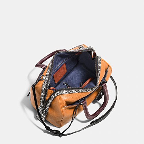 -. Brand : -. Color : Dark Nickel / Butterscotch -. Department : womens -. EAN : 0889532752164 -. Feature : Done in glovetanned pebble leather with genuine snake trim, from the 1941 Collection / The zip closure opens to reveal an interior that's fully lined in suede with zip and French purse pockets / Double, lace detail leather handles have an approximate drop of 4 1/2" and a long, adjustable and removable strap for shoulder or crossbody wear / Measures approximately: 11 1/2" (L) x 7 3/4" (H) x 6 1/2" (W) -. ProductGroup : Shoes -. ProductTypeName : HANDBAG -. Size : Large -. Title : Glovetanned Pebble Leather Colorblock Snakeskin Rogue Satchel in Dark Nickel / Butterscotch 58841 -. UPC : 889532752164