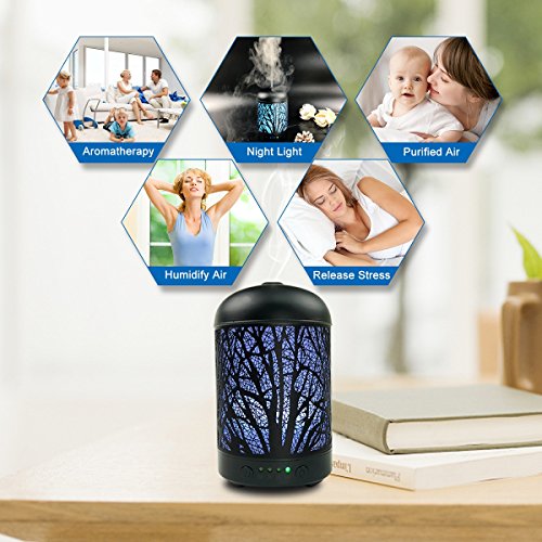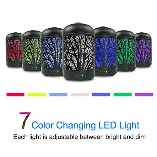 - ★ 7 COLOR CHANGIGNG LIGHT: This essential oil diffuser humidifier features 7 changing color LED light, which create a calming and romantic atmosphere when you are sleeping, working, reading, studying.