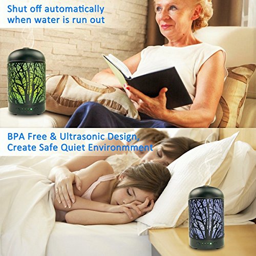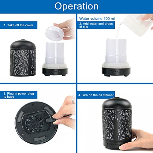 - ★ BPA FREE MATERIAL: Our essential oil diffuser humidifier made from PP hard plastic with iron cover. With 100ml capacity, the oil diffuser can lasts for 5 hours, ideal for home, office, bedroom, yoga and Spa.