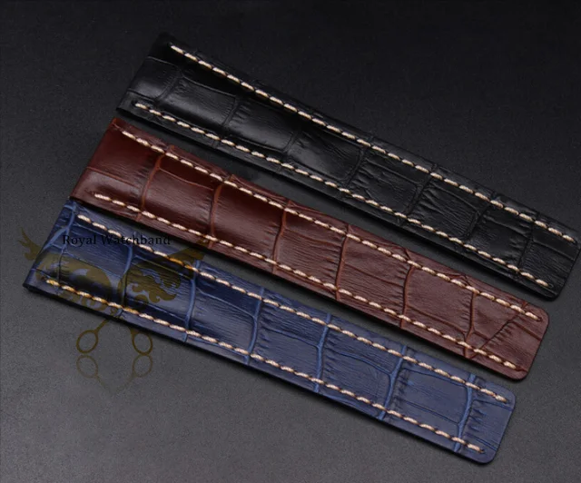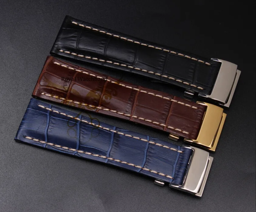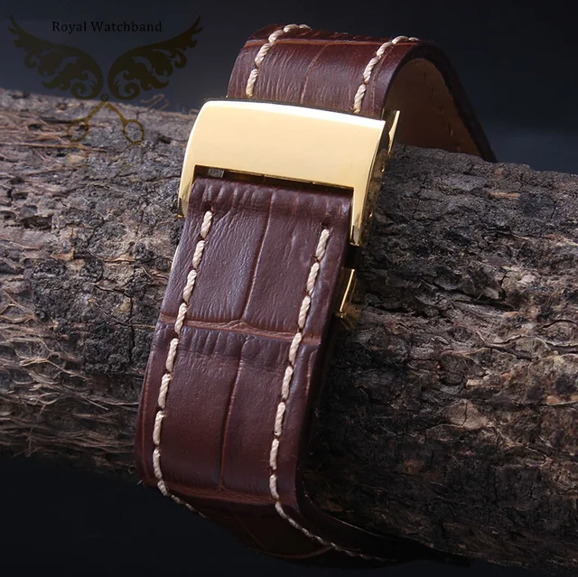| [해외]22 미리메터 24 미리메터 브라운 수제 정품 악어 patterb 정품 가죽 시계 스트랩 밴드 골드 depolyment 걸쇠 버클 |