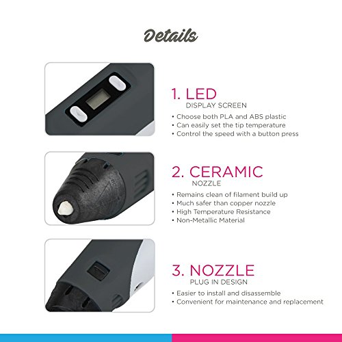☼ 3D Pen Doodler - 2nd Gen 3D Drawing Pen, Extra Long 6 Foot Power Cord, 3D Printer Pen Has LED Display, ABS or PLA Compatible (3D Pen Kit With Starter PLA Filament) ☼