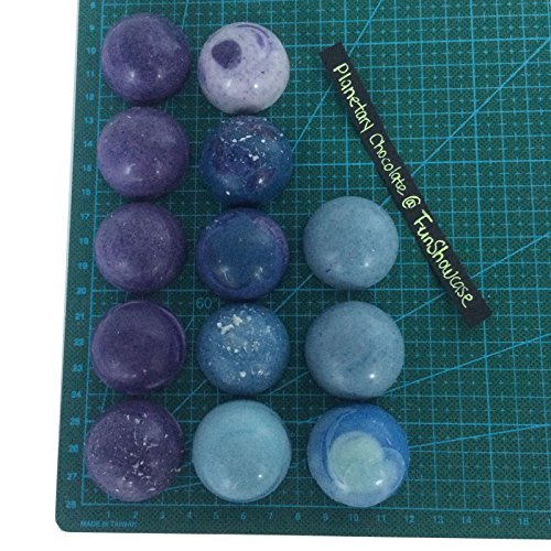 - 3D DIY Silicone Mould ( can be made a ball if stick together, and can create different sizes of dome, height within 1.9cm and diameter within 3.8cm ) . Demension 29.8x17.4x1.9cm 15 cells, Each cell diametre 3.8cm, per hole volume 15ml ( 1tbsp 1 tablespoon ).Dishwasher, freezer, microwave and oven safe. Multi-Purpose and reusable