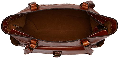 -. Feature : Front pouch pocket with flap and antique brass buckle detail and magnetic snap / Top-zip closure and slip pockets wrap around each side panel / Double handles / Rear zip pocket / Interior zip pocket and 2 slip pockets