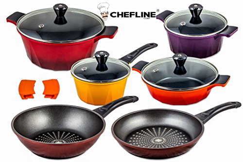 SWISS INSPIRED CHEFLLINE DIAMOND FRYING PAN NON-STICK & CERAMIC POT SET 12 PIECE