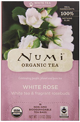 NUMI ORGANIC TEA WHITE ROSE - FULL LEAF WHITE TEA IN TEABAGS, 16-COUNT (PACK OF 6)
