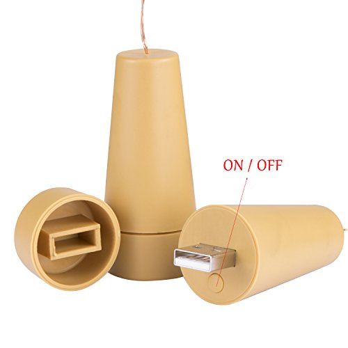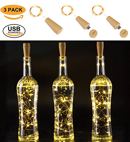 Rechargeable Wine Bottle String lights , AnSaw 3 Pack USB Powered 20LED Bottle Cork Lights Starry Fairy Home Twinkle Cork Shape Decor Lights for Party , Christmas, Halloween ,Wedding (Warm White)