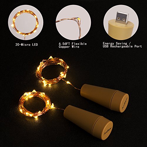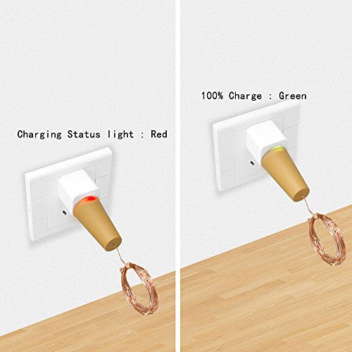 - 6.56FT Flexible Silver Wire , 20-LED Rechargeable Cork Shape String Lights Design give the appearance of evenly distributed inside a corked bottle