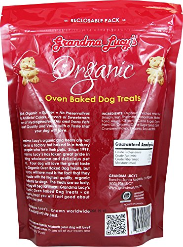 -. Feature : Organic Oven-Baked Dog Treats-Grandma Lucy's organic dog treats are not made in a factory but baked in a bakery by people who love their pets. Since 1999, Grandma Lucy's has taken great P.R.Ide in making wholesome, natural and delicious pet treats. Your dog will love the great taste of our Organic Oven-Baked Dog Treats, but what you will love most is the fact that they are made with organic, human-quality ingredients. The treats are so tasty, your dog will beg for more. / USDA Organic / Certified Kosher / Vegan